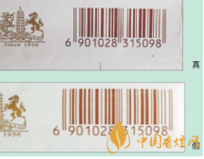 3.真品卷煙小盒條碼線條均勻,較細,立體感強,色彩飽和度好;假冒卷煙小盒條碼線條較粗,色彩不均勻,立體感差。
