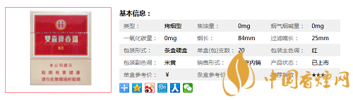 | 類(lèi)型 :烤煙型 | 焦油量 :10mg | 煙氣煙堿量 :1mg | 一氧化碳量 :11mg |