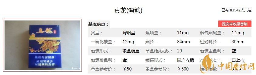 真龍海韻產(chǎn)自廣西,它被譽(yù)為廣西中煙的“神來(lái)之筆”,真龍品牌最為經(jīng)典的香煙代表作之一。它以傳統(tǒng)的龍為圖騰,配以彰顯吉祥的云紋,非常的大氣,有南海龍王之美譽(yù)。