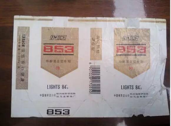 853,又一重量級香煙,混合型香煙,和現(xiàn)在的中南海味道相似。在河南市場上也是為數(shù)不多堅持時間較長的,03年左右市場上仍可買到。喜歡吸853的人年齡一般較大,年輕人很少吸。