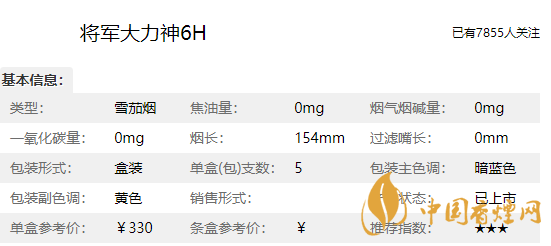 雪茄是一種象征著國際潮流時尚的香煙,國內(nèi)有很多時尚達人都特喜歡抽雪茄煙,特別是全手工制作的全葉卷雪茄煙倍受關(guān)注,市場發(fā)展形勢也一片大好,將軍戰(zhàn)神6h是時尚潮流的新品,它影射出當(dāng)代社會奮斗型精英,像戰(zhàn)神般勇于挑戰(zhàn)的勝利者精神。這款雪茄煙的參考售價為150元/盒。