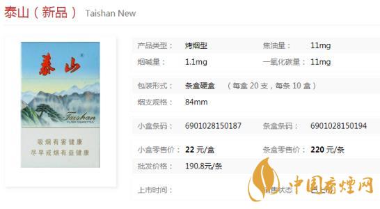 泰山新品精選優(yōu)質(zhì)進口煙葉,采用純天然香精香料,香氣清雅濃馥、豐滿、諧調(diào)、吸味純正、口感細膩、余味純凈舒適,“清新自然、至尊泰山”是卷煙中的高檔精品。下面一起來看下泰山新品的具體參數(shù):一盒20支,煙長84mm,焦油量11mg,煙堿量1.1mg,一氧化碳量11mg。