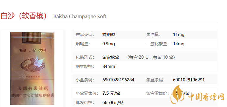 以上就是小編收集到的白沙軟香檳多少錢(qián)一包,白沙軟香檳怎么樣的相關(guān)信息,希望可以對(duì)你有所幫助,以上信息均來(lái)源于網(wǎng)絡(luò),更多相關(guān)信息請(qǐng)關(guān)注香煙網(wǎng)。