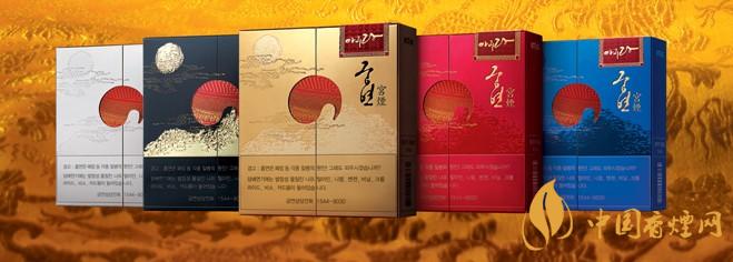 宮煙一套分為5盒裝,分別為金、銀、紅、藍、黑5種顏色。煙盒以韓國著名的景福宮為主圖,金光閃閃,王氣十足。整體外觀結構和設計都相當完美,360度無死角的完美,充分體現了它的精美與別致。它的奢華與大氣難以言表,是我見過最漂亮的香煙。