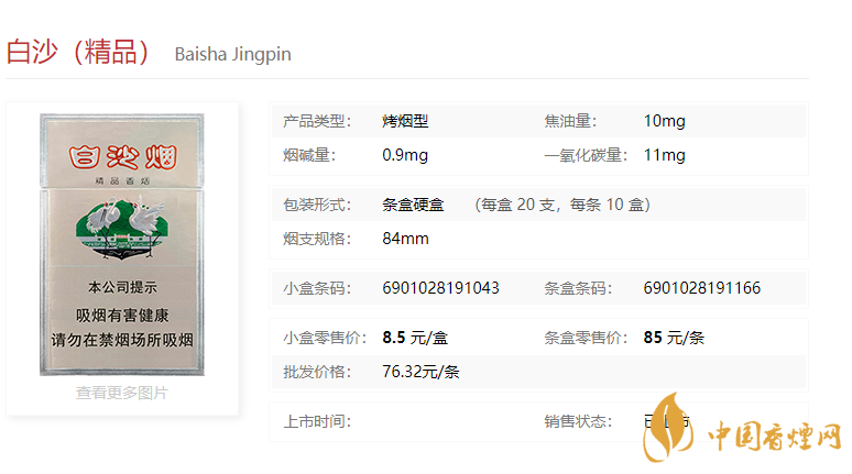 精品白沙,烤煙型,中高檔卷煙,中國醇和派的領飛者。1995年面市以來,產品深得消費者的喜愛,銷量增長迅猛,亦是全國中高檔煙市場的主要牌號之一。精品白沙,外包裝延用“白沙”牌卷煙外包裝圖案,采用高檔銀卡紙,經(jīng)壓凸套印來突出商標的主體圖案及品牌形象,格調高雅、新穎,裝璜精美,成為企業(yè)效益增長的主要來源。吸味醇和、香氣濃郁、清雅豐滿、余味純凈、舒適。