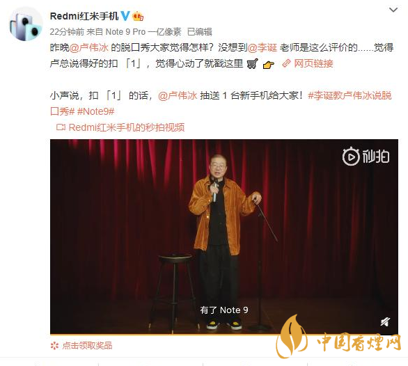 據悉,盧偉冰還將于12月1日再次開啟個人脫口秀直播,屆時Redmi Note 9系列正式上市發(fā)售。