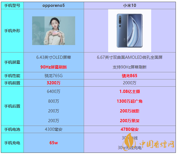 小結(jié):在手機(jī)的續(xù)航方面是小米10更好,為用戶(hù)帶來(lái)最多的電池容量,在手機(jī)的充電速度方面是opporeno5最優(yōu),為用戶(hù)帶來(lái)65w的充電速度
