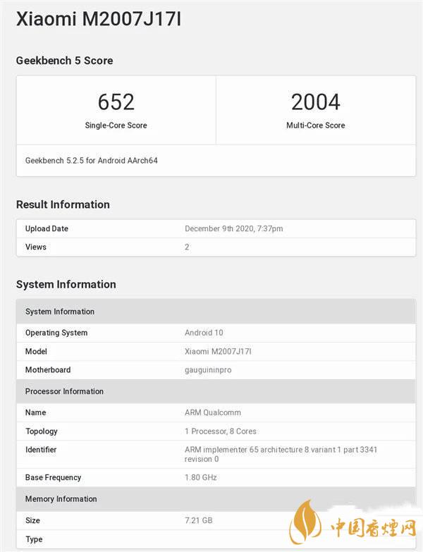 近期關于小米10i的跑分已經被曝光,有著單核652分,多核2004分的表現。