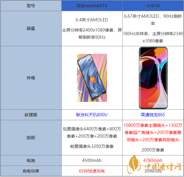 近期,迎來realmev15的發(fā)布,realme V15和小米10哪個好,realmev15和小米10有什么差別?哪款手機更值得入手?下面香煙網(wǎng)小編為大家?guī)韗ealmev15和小米10的詳細參數(shù)對比,感興趣的朋友一起來看看吧!