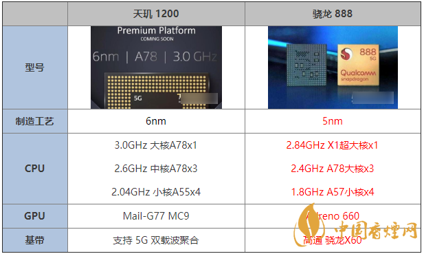 天璣1200:采用“1+3+4”的八核構(gòu)架,1個(gè)最大核A78,主頻為3.0GHz,GPU采用G77構(gòu)架,Mail-G77 MC9。