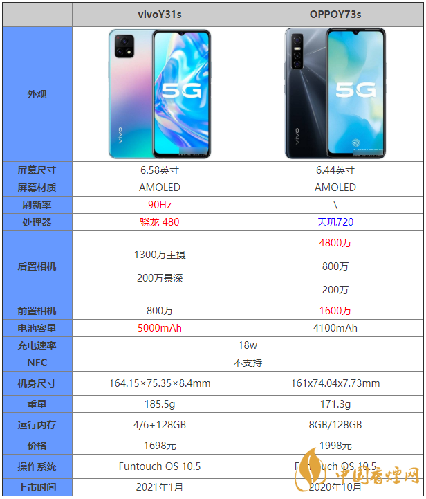 vivo Y31s:搭載驍龍480處理器,8nm制程工藝,兩個(gè)主頻達(dá)2.0Ghz的A76內(nèi)核,GPU型號(hào)為高通 Adreno 619