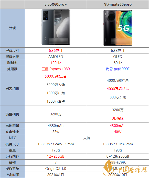 vivox60pro+和華為mate30epro有哪些區(qū)別?肯定會(huì)有朋友在糾結(jié),vivox60pro+和華為mate30epro這兩款手機(jī)選哪個(gè),哪個(gè)性價(jià)比更高更值得購(gòu)買,接下來香煙網(wǎng)小編就帶來了參數(shù)對(duì)比,一起來看看有什么區(qū)別吧!