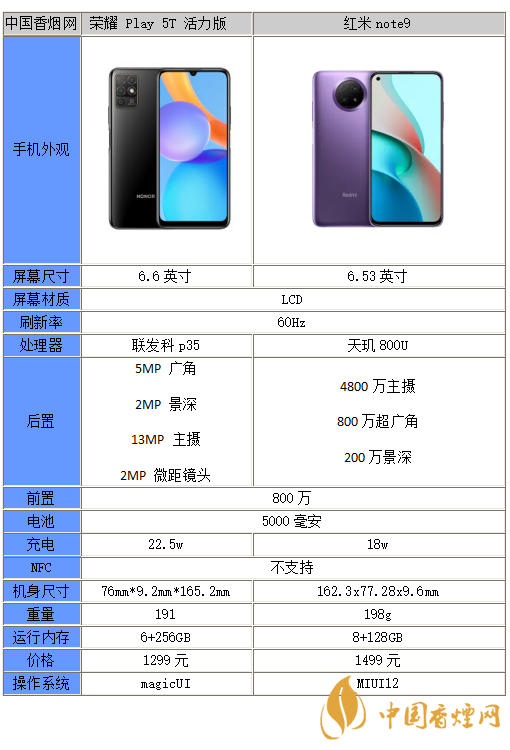 以上就是小編收集到的榮耀plya5t活力版和紅米note9區(qū)別在哪-性能分析-哪個(gè)更值得買的相關(guān)內(nèi)容,以上內(nèi)容均來源于網(wǎng)絡(luò),僅供參考,一切以實(shí)際為準(zhǔn),更多最新數(shù)碼資訊請(qǐng)關(guān)注香煙網(wǎng)。
