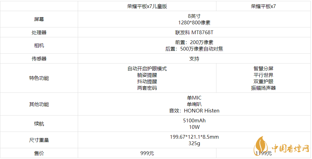 以上是小編整理的有關(guān)榮耀平板x7兒童版和普通版參數(shù)對比-哪個更好的信息,相信在座的朋友們聽到小編的介紹有所認識,但是小編在這里提醒一句以上信息整合于網(wǎng)絡(luò),更多最新最實用的資訊請持續(xù)關(guān)注香煙網(wǎng)。