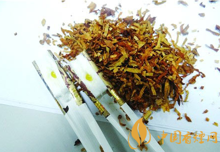 真品濾棒中添加了“香潤珠”,油潤性好切絲均勻,顏色呈現(xiàn)金黃色;假煙濾棒未添加“香潤珠”,煙絲干直切絲粗細不一,顏色呈現(xiàn)出淺褐色,與真品存在顯著差異。