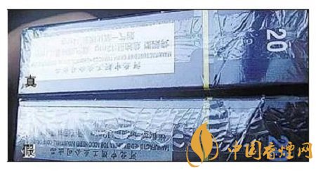 真煙壓邊準確,印刷清晰;假煙燙金粗糙。