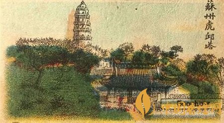 江蘇蘇州虎丘塔又稱云巖寺塔,始建于公元959年。塔系平面八角形,七級(jí),是蘇州現(xiàn)存的最古老的一座佛塔,是古城蘇州的象征。畫面上虎丘塔高高聳立于景色幽雅的虎丘山巔上。