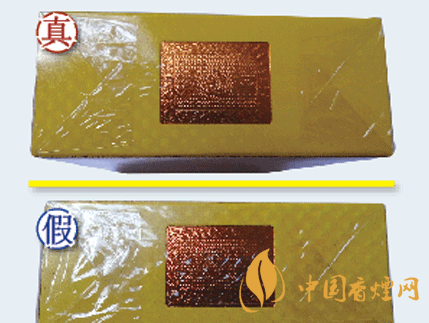 小盒頂部光柵防偽技術(shù)差異比對:真品小盒頂部正對光線時,小盒頂部光柵片會呈現(xiàn)出“黃金葉”三個字;假煙無任何防偽變化效果,與真品防偽效果存在明顯差異。