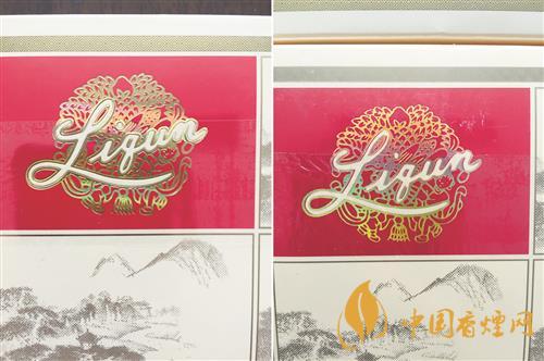 商標(biāo)紙印刷工藝差異對比:真煙“Liqun”字母以及花球的圖案清晰,線條清晰飽滿,立體感較強。假煙圖案整體較為模糊,字體不飽滿,邊緣不清晰,無立體感。