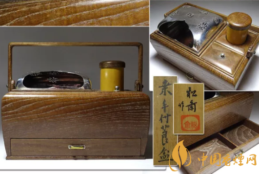 但是這種裝飾得華麗的煙草盆只是貴族的愛用品,真正深研茶道的茶人則更愛用樸素簡單的桐木、桑木制成的籃式煙草盆。即便是看似簡單的籃式,有一些為名家之作,選用昂貴的木材和非凡的工藝,隨沒有箱式那般華麗,但是往往也價(jià)格不菲。